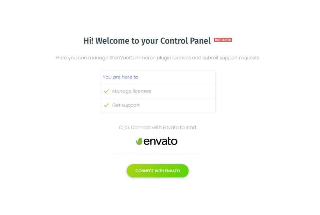 Our plugins are sold on Envato market only. Login to your XforWooCommerce Control Panel by connecting it with your Envato account.