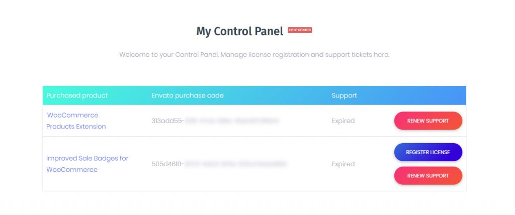 Complete the guide below to successfully register your purchased licenses from Envato/Codecanyon.